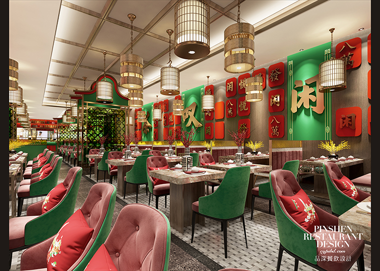 1、空間是悅得閑品牌內涵的直觀化、立體化表達。悅得閑的空間裝飾應該呈現鮮明的品牌特征,符合廣式點心茶樓的品類特性;