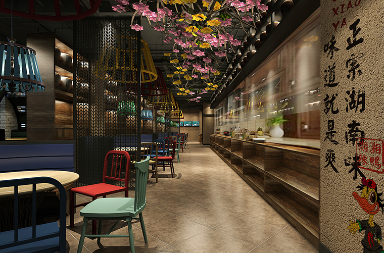 4、裝飾品、雕塑擺件、工藝品、畫藝軟裝。現(xiàn)在的餐廳,主題性越來(lái)越強(qiáng)烈鮮明,比如流行的校園烤魚餐廳,喜歡用大量80、90年代的舊電視、鳳凰自行車,表達(dá)對(duì)時(shí)光的追憶;在當(dāng)下一些更古典的餐廳如桂滿隴等,大量使用小橋流水,輕舟古船、古琴書法藝術(shù)等在,江南風(fēng)格極為鮮明。但成本高昂,偏離餐飲本質(zhì)。品深餐飲設(shè)計(jì)曾經(jīng)做過(guò)的丑小丫湖南菜館,原創(chuàng)設(shè)計(jì)了丫哥、丫妹造型,并且把這個(gè)造型在空間以雕塑形式出現(xiàn),讓消費(fèi)者合影,軟裝效果很好。
