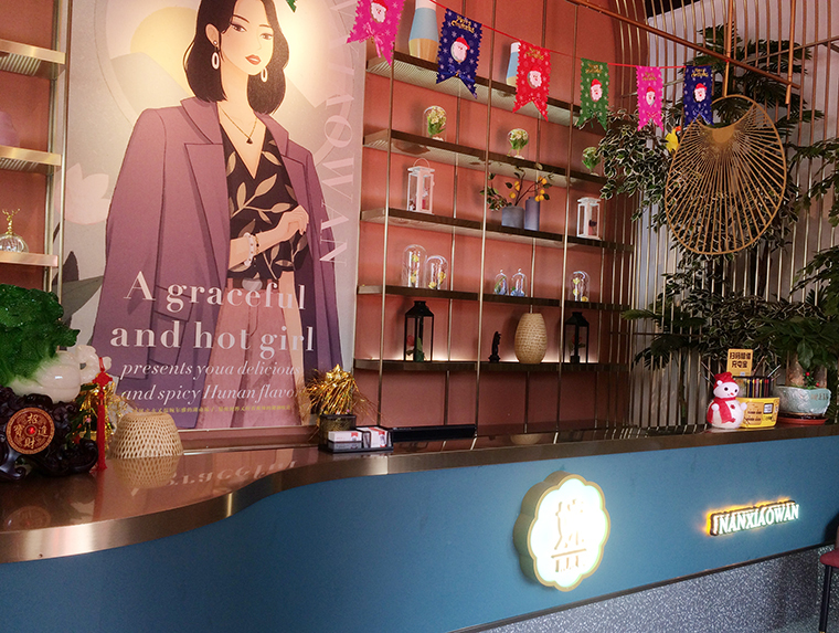 6、品牌定制裝置軟裝。品牌專屬軟裝陳列,是品深餐飲全案策劃設(shè)計(jì)獨(dú)創(chuàng)的軟裝藝術(shù)。和傳統(tǒng)的空間裝飾設(shè)計(jì)公司不同,品深餐飲全案設(shè)計(jì)需要定制品牌專屬的軟裝將品牌的文化內(nèi)涵以具象化的形式展示出來(lái)。比如墻面的專屬畫面、LOGO主形象、體現(xiàn)品牌內(nèi)涵的文案廣告字等。在品深策劃設(shè)計(jì)的南小婉湖南味道,空間中的各種框畫就是我們?cè)瓌?chuàng)設(shè)計(jì),非常有特色;而品深餐飲設(shè)計(jì)的蘩樓LOGO主形象已經(jīng)成為了廣大顧客拍照打卡最佳之處,曝光率極高。相對(duì)于其他軟裝,品深餐飲全案策劃設(shè)計(jì)最講究的品牌專屬軟裝設(shè)計(jì),傳達(dá)品牌核心內(nèi)涵。