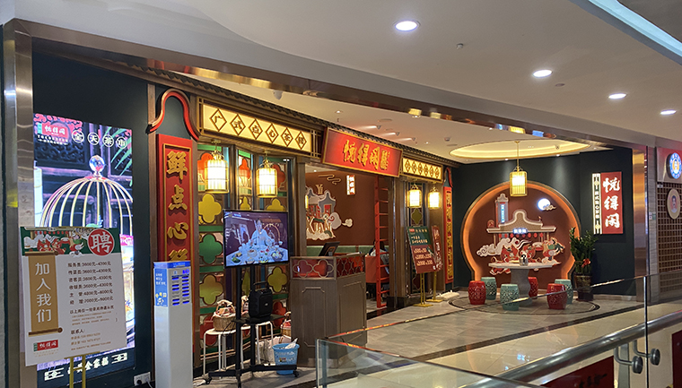餐廳外觀通透,落地玻璃采光極好,很多顧客都喜歡坐在靠窗的位置,視野更寬闊,坐在店面最外圍的顧客,這時(shí)候也成了最佳招攬生意的招牌。