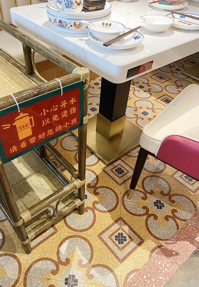 廣式花窗,又稱為滿洲窗。源自于廣州最開始與外國開展海外貿(mào)易,是典型的舶來品。滿洲窗不同的款式和花紋組合體現(xiàn)了使用者的生活富足與審美情趣。廣式花窗可以很好的表現(xiàn)廣式點心茶樓的品類屬性,具有一目了然,一見如故的特性。在寶粵樓的空間設(shè)計中,我們將廣式花窗大面積使用門口兩側(cè)的主形象,包房隔斷、甚至天花吊頂上,形成了強烈的視覺沖擊力,具有鮮明的老廣州西關(guān)韻味。