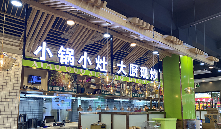現(xiàn)炒快餐因?yàn)轭櫩妥灾鬟x擇菜肴、稱重,菜品,新鮮現(xiàn)炒;廚房是全開(kāi)放設(shè)計(jì),現(xiàn)炒過(guò)程一覽無(wú)余,新鮮現(xiàn)炒一覽無(wú)遺;門(mén)店環(huán)境也比傳統(tǒng)快餐更加舒適精致。