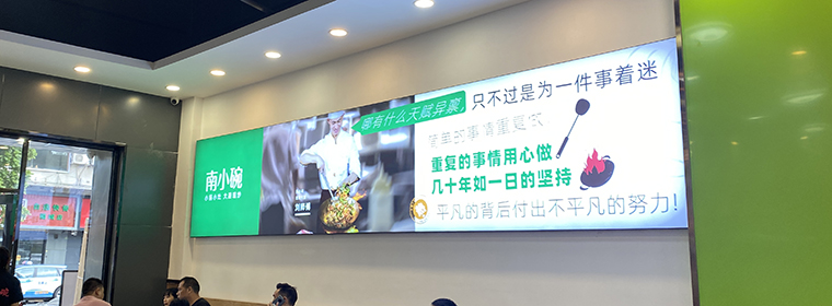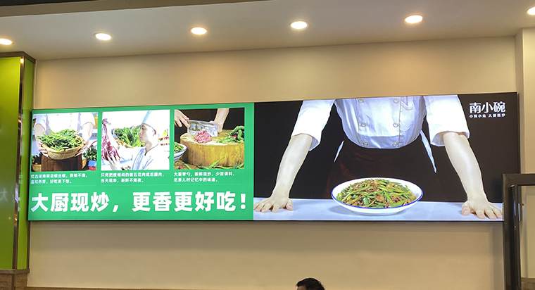 我們通過(guò)前期周密的市場(chǎng)考察和詳細(xì)的內(nèi)部調(diào)研,品深餐飲全案設(shè)計(jì)團(tuán)隊(duì)為南小碗提取了“小鍋小灶,大廚現(xiàn)炒”的核心訴求,并在門(mén)頭和店內(nèi)廣告畫(huà)面不斷重復(fù)強(qiáng)化“小鍋小灶,大廚現(xiàn)炒”小鍋小灶更有鍋氣,大廚現(xiàn)炒更好吃。并把食材原產(chǎn)地,和菜品制作過(guò)程在門(mén)店形象中不斷放大,重復(fù),讓消費(fèi)者記憶深刻。