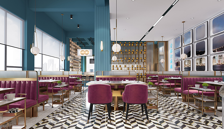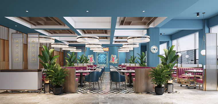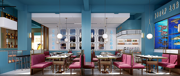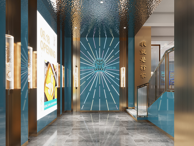 根據(jù)行家港式火鍋的品牌定位,我們餐廳的整體氛圍應(yīng)該輕奢且品質(zhì)感很強(qiáng);熱鬧卻不喧囂,精致有特色但容易讓人親近!整個(gè)餐廳的色彩以暖色調(diào)的不銹鋼金色為主,凸顯火鍋的用餐熱鬧,同時(shí)也讓顧客更容易親近,柜體運(yùn)藍(lán)色表達(dá)出鮮明的港式風(fēng)格,同時(shí)也點(diǎn)明我們海鮮火鍋的特色。
