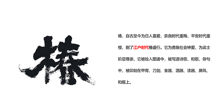品牌的借船出海,搭文化便車。中間斷開的線條,是玉字的變形,象征品牌典雅,精致的特性?;照轮虚g一個日本文字“椿”,精準表達品牌核心名。